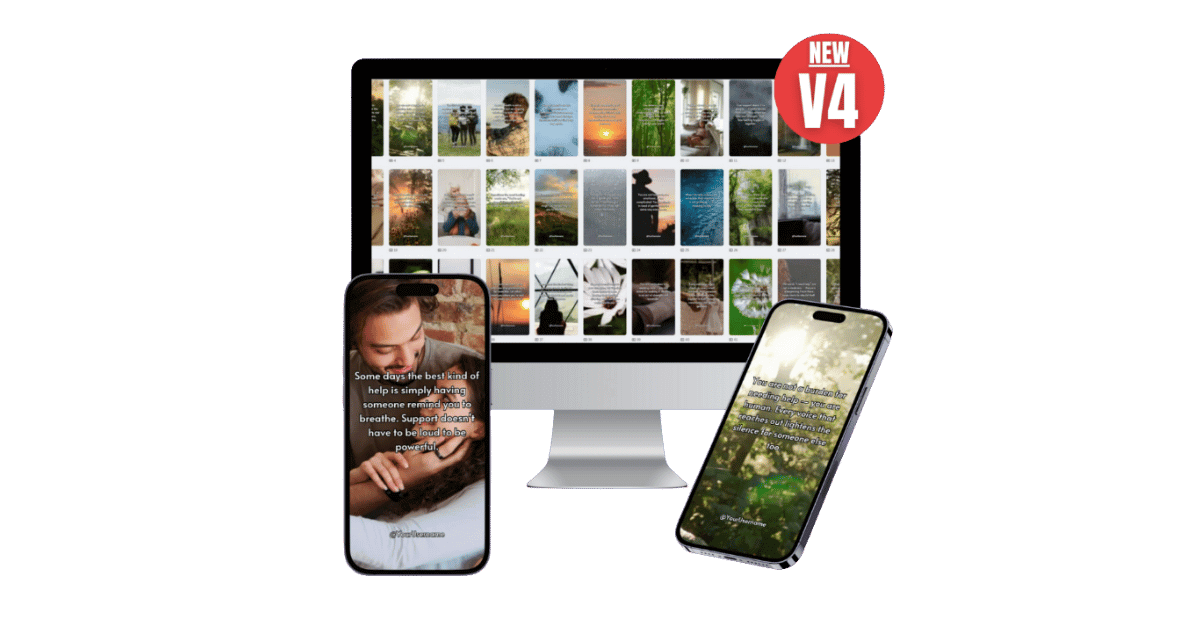 More specifically, the Mental Health Viral Videos Bundle, Edition 4 provides short clips built around themes such as self-compassion, resilience, mindfulness, inner healing, mental health reminders, and motivation for self-growth. These aren’t generic templates—they are fully produced micro-videos already structured for engagement, meaning all the editing, wording, and design work has been done for you.